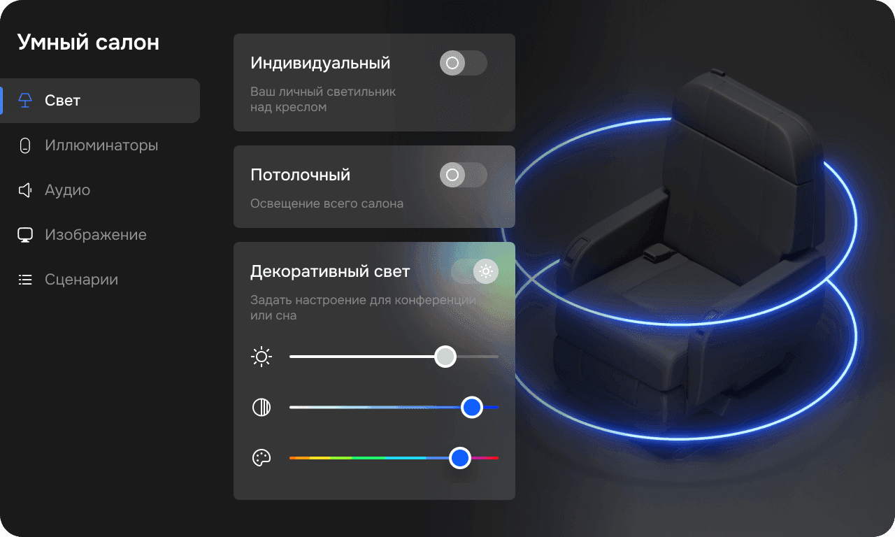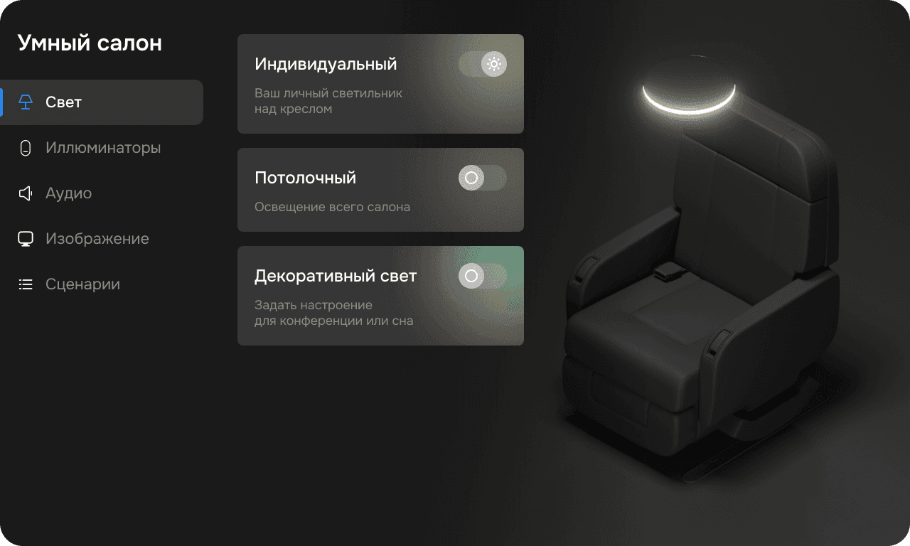 Программно-аппаратный комплекс для информационно-развлекательной системы частных бизенс-джетов. Список запрашиваемых функций охватывал использование системы как пассажиром, так и бортпроводником. Требовалось много работы с 3D и анимациями, а также поддержка нескольких платформ: веб, десктоп до 4К, планшеты и мобильные телефоны.