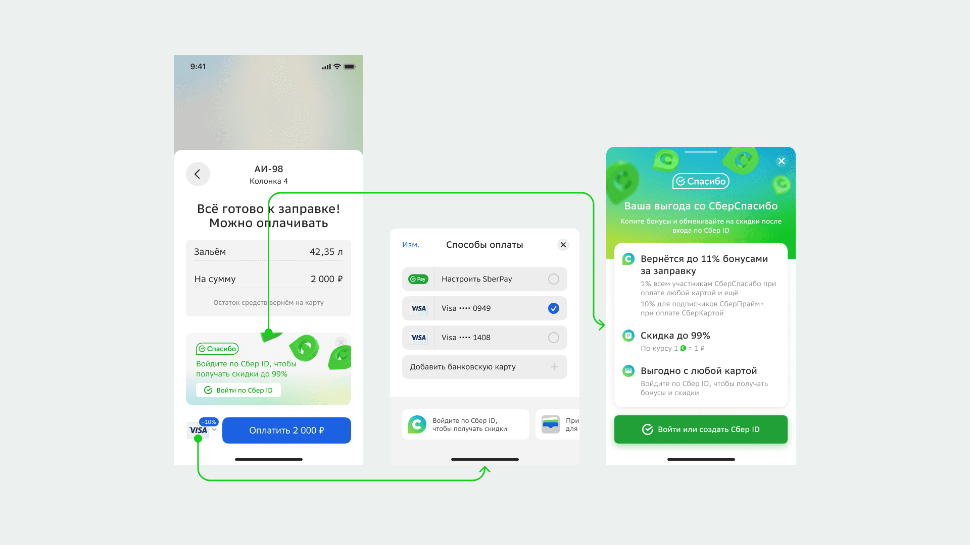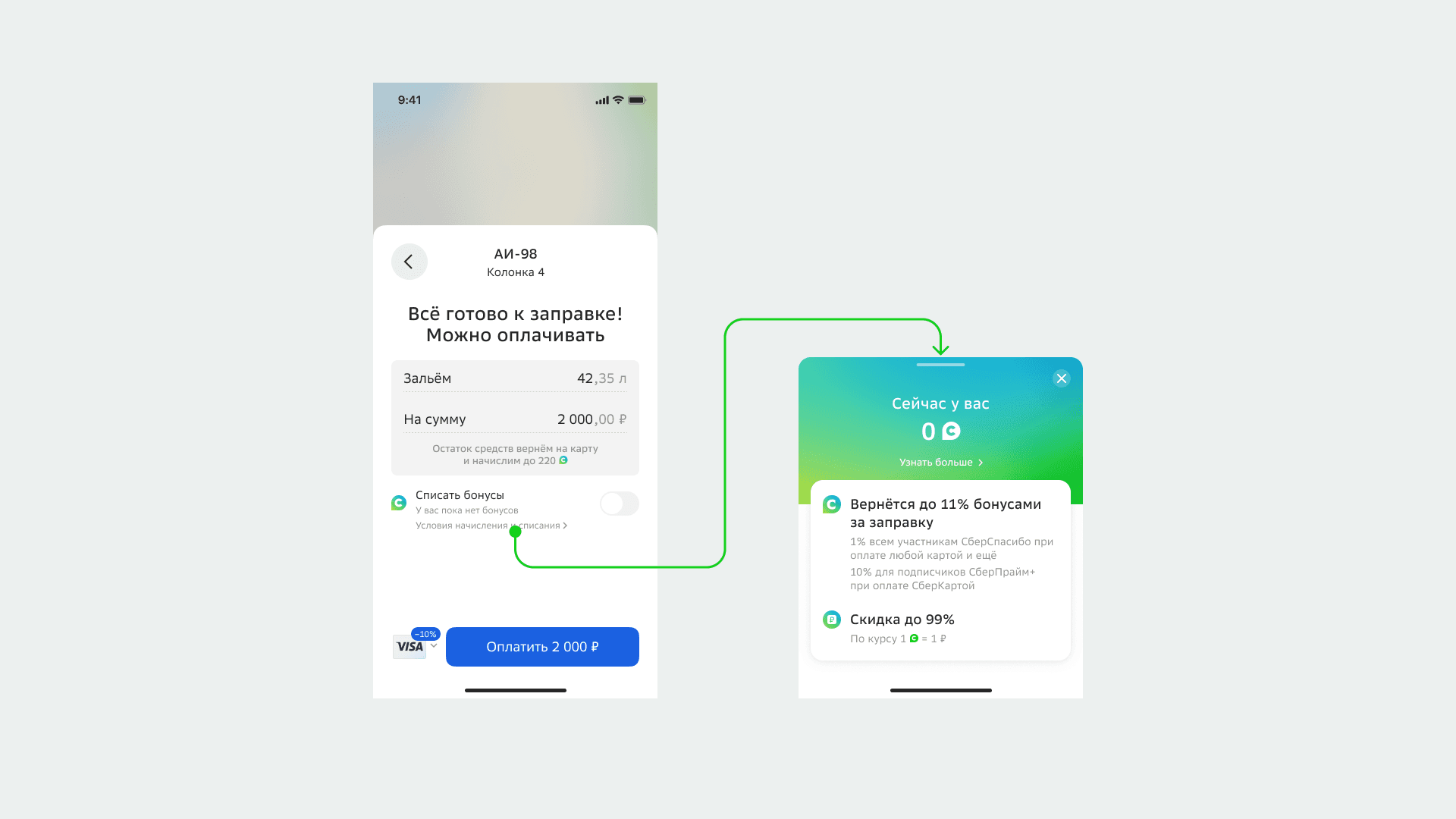 Требовалась интеграция СберСпасибо в блок заправок приложения 2ГИС. Нужно было вести коммуникацию сразу с тремя командами, доработать сценарий заправки и обогатить его элементами бонусной программы «СберСпасибо».